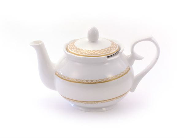 Dzbanek Mable marki Ashdene Manufactoring Pty Ltd to klasyczny, porcelanowy dzbanek do herbaty z praktycznym metalowym sitkiem o pojemności 1,2 l. Subtelna biała kolorystyka połączona ze złotymi zdobieniami sprawia, że doskonale prezentuje się zarówno na co dzień, jak i podczas bardziej uroczystych spotkań przy herbacie.