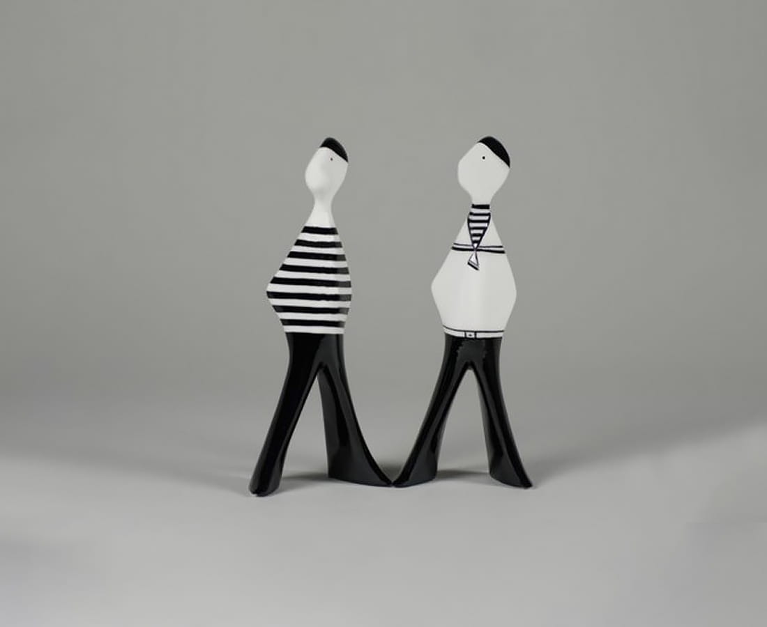 Figurka "Felek – Marynarz" marki AS Ćmielów to minimalistyczna, biało‑czarna dekoracja z wysokiej jakości porcelany, która przyciąga wzrok elegancką, wydłużoną sylwetką i charakterystycznym marynarskim strojem. Prosta forma i gra kontrastów sprawiają, że figurka świetnie prezentuje się zarówno solo, jak i w duecie z innymi postaciami z serii.