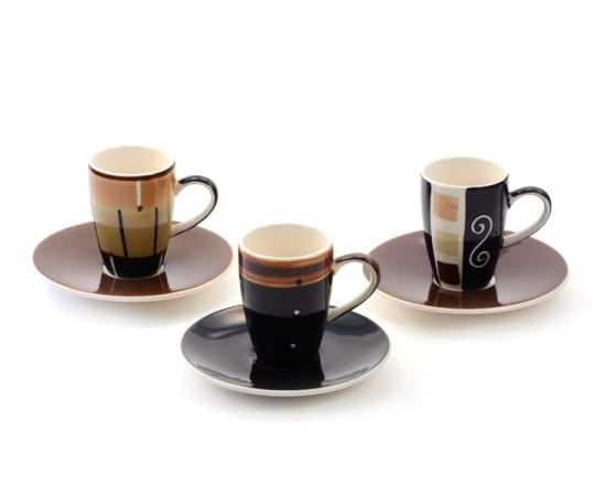 Seria filiżanek do espresso "Sao Paulo" wyróżnia się nowoczesnymi wzorami i ciepłą kolorystyką w odcieniach brązu, beżu i czerni. Delikatne geometryczne motywy i kontrastowe detale nadają im wyrazisty, a jednocześnie uniwersalny charakter – pasują zarówno do minimalistycznych, jak i bardziej klasycznych wnętrz.
